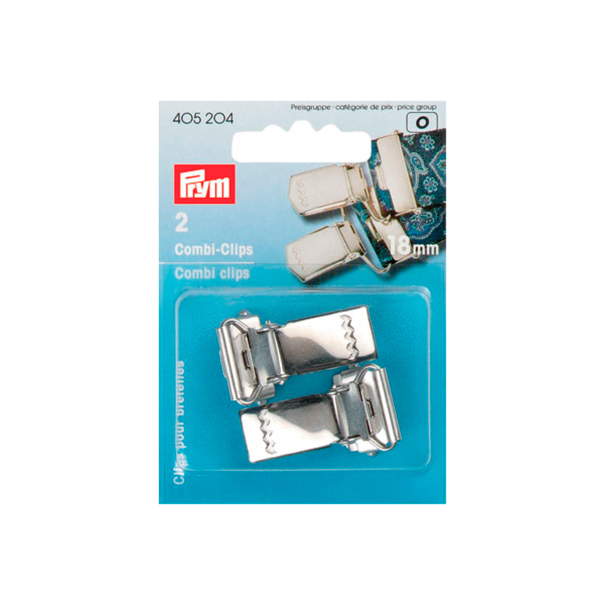 Зажимы д/подтяжек с пряжкой-клапаном, сталь, с защитой от коррозии, д/зажимания, 18мм, серебристый, 2шт в блистере, Прим