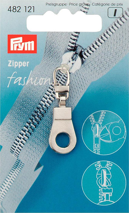 Подвеска д/молний, с карабином д/смены, металл, нержавеющий, серебристый, 1шт на блистере, Прим