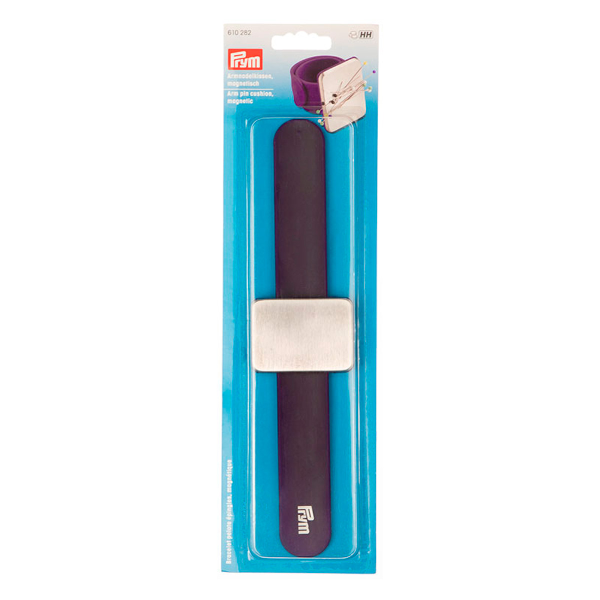 Практичнее не бывает: магнитная игольница на руку отныне делает рукоделие еще проще. С ее помощью можно удобно и безопасно хранить все необходимые принадлежности из металла, такие как булавки, швейные иглы или принадлежности для вязания спицами, которые необходимы для рукоделия. Это обеспечивает металлическая пластина из сатинированной нержавеющей стали с встроенным магнитом – а значит можно забыть о постоянном поиске мелких деталей. Браслет фиолетового цвета из высококачественного силикона гибок и оптимально подходит на любое запястье. Эта магнитная игольница на руку является настоящим преимуществом, когда речь идет о хранении металлических мелких деталей во время рукоделия!
