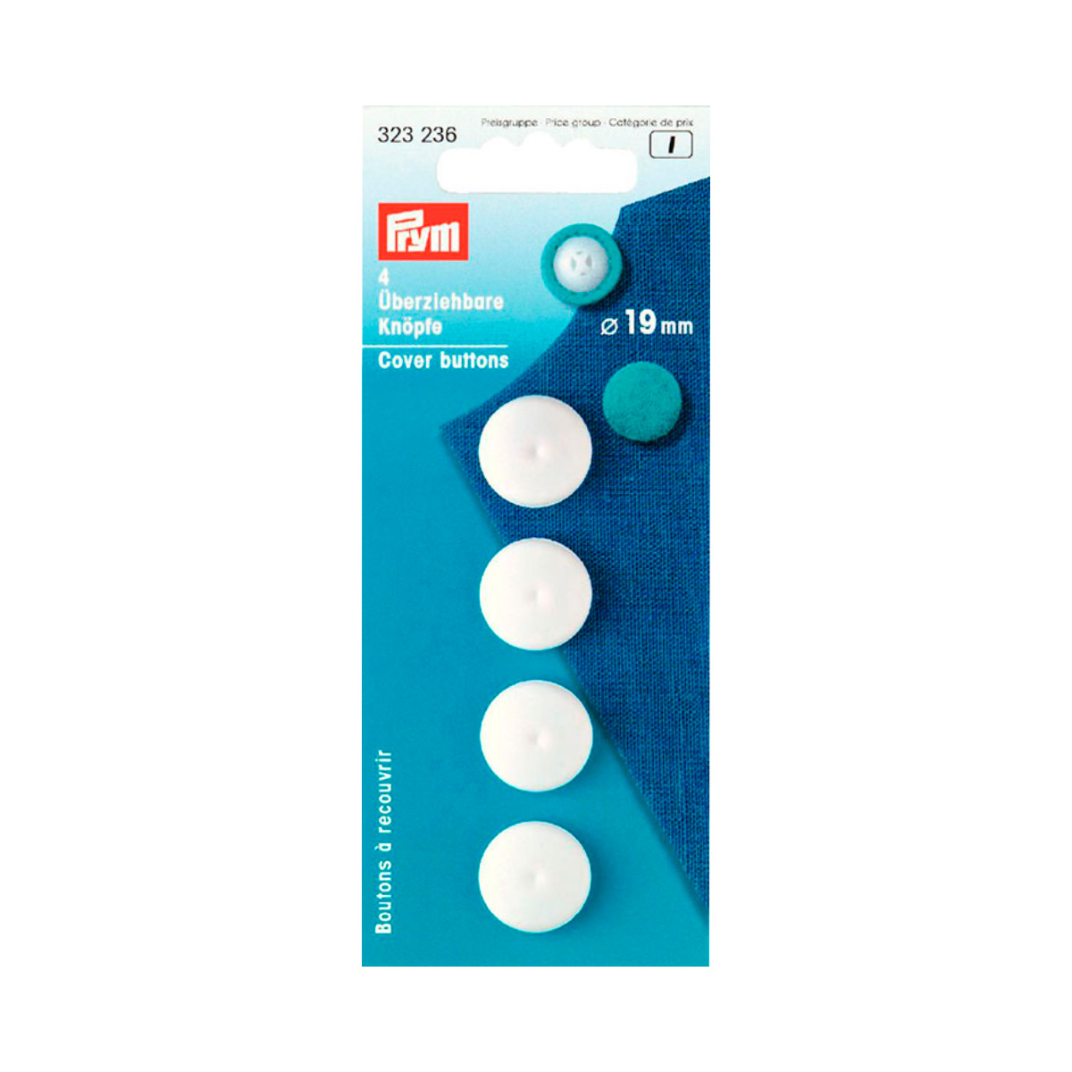 Пуговицы д/обтягивания тканью пластик, 19мм, белый, 4шт в блистере, Прим