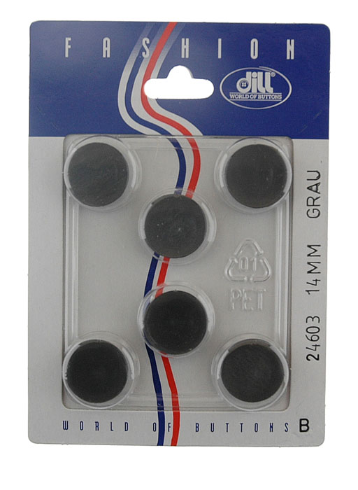 Пуговицы, размер 14мм, пластик, серый, 6шт в упаковке