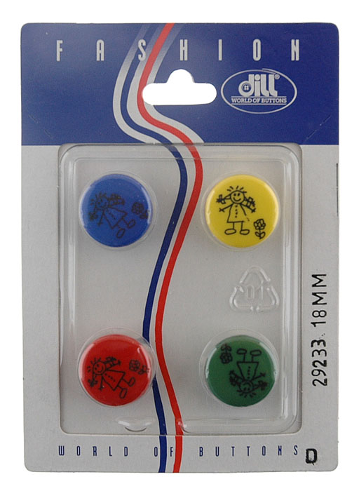 Пуговицы, размер 15мм, пластик, разноцветный, 4шт в упаковке