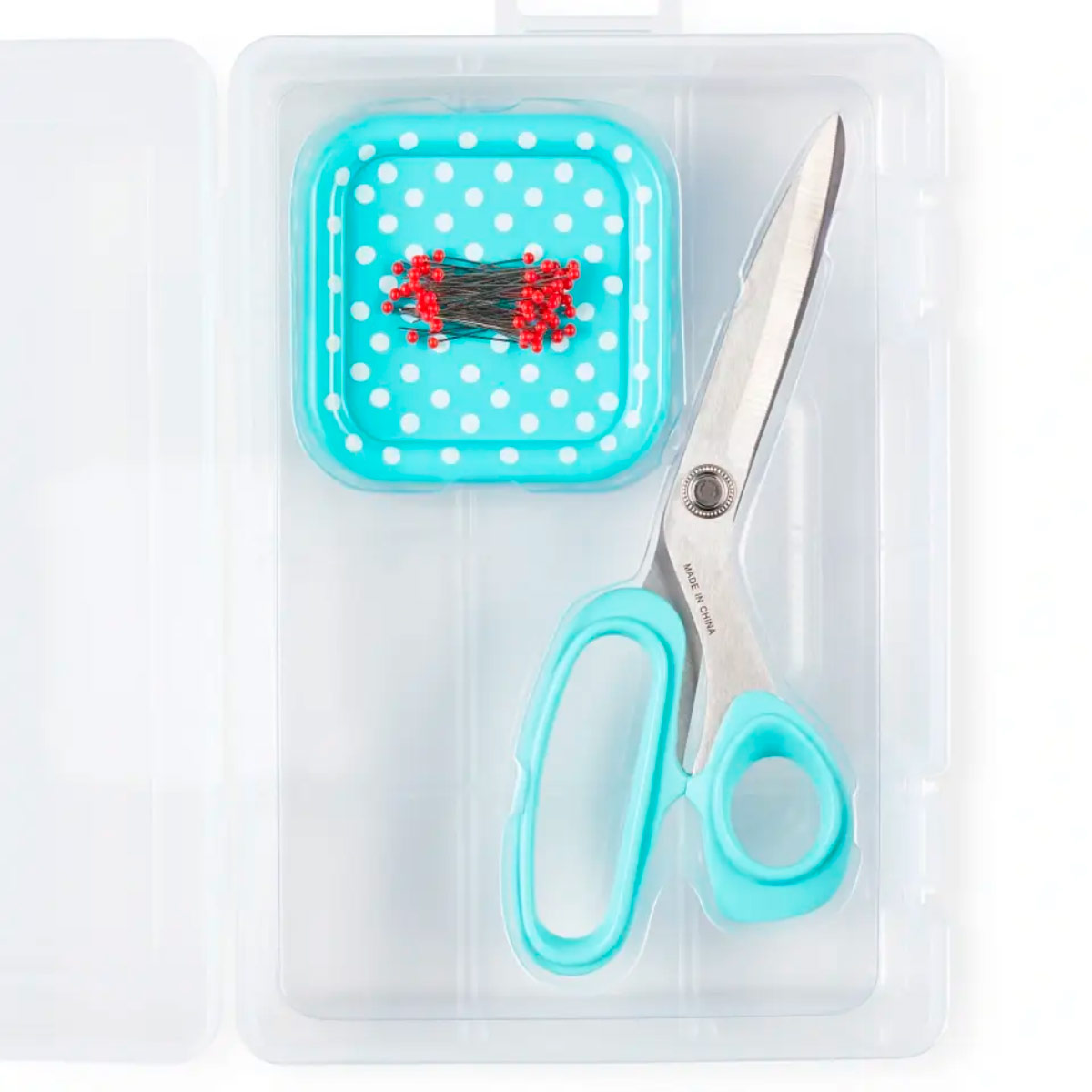 Серия "Prym Love" - Базовый набор "Шитье" (состав: бокс 16*25см пластик, ножницы портновские, ассортимент швейных иголок 15шт в упаковке, магнитная игольница с наполнением (9г булавок 0,6*30мм с цветными головками), линейка для разметки и измерения, маркер для ткани, устройство для распарывания швов "Ergonomic", игольница "Томат", прищепки для работы с тканями 12шт)