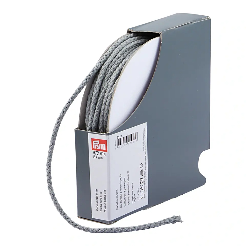 Шнур для парки, диаметр 4мм, 100% полиакрил, серый, Prym, 972614