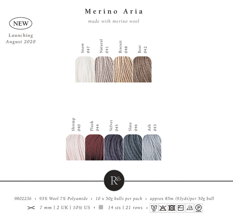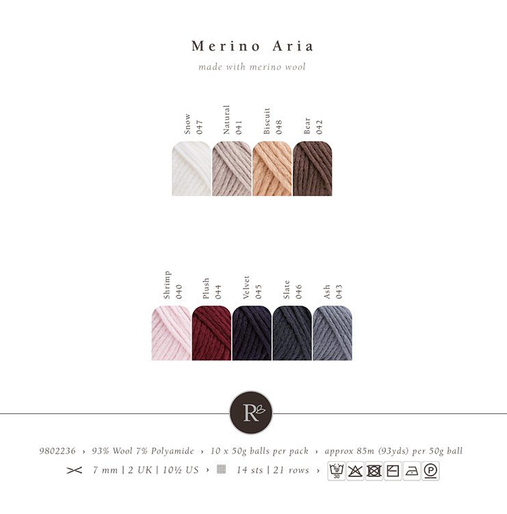 Rowan-британский премиальный бренд пряжи высокого качества с натуральными составами. Merino Aria - толстая, но легкая пряжа с мягким сиянием, созданная из 100% мериносовой шерсти. Представлена в девяти приглушенных, нежных оттенках, которые подчеркивают изысканность изделия. Мериносовая шерсть ценится за свою мягкость и чистый белый цвет, который легко окрашивается. Эта пряжа с мягким ореолом из мериносовой шерсти обеспечивает комфорт при носке. Merino Aria быстро вяжется на спицах 7 мм и отличается легкостью благодаря цепочному плетению.Рекомендуется ручная стирка при температуре до 30°C и сушка в горизонтальном положении. Перед началом проекта свяжите и постирайте образец. Для размера M потребуется 600–700 грамм пряжи. Рекомендуемые спицы: 7 мм.