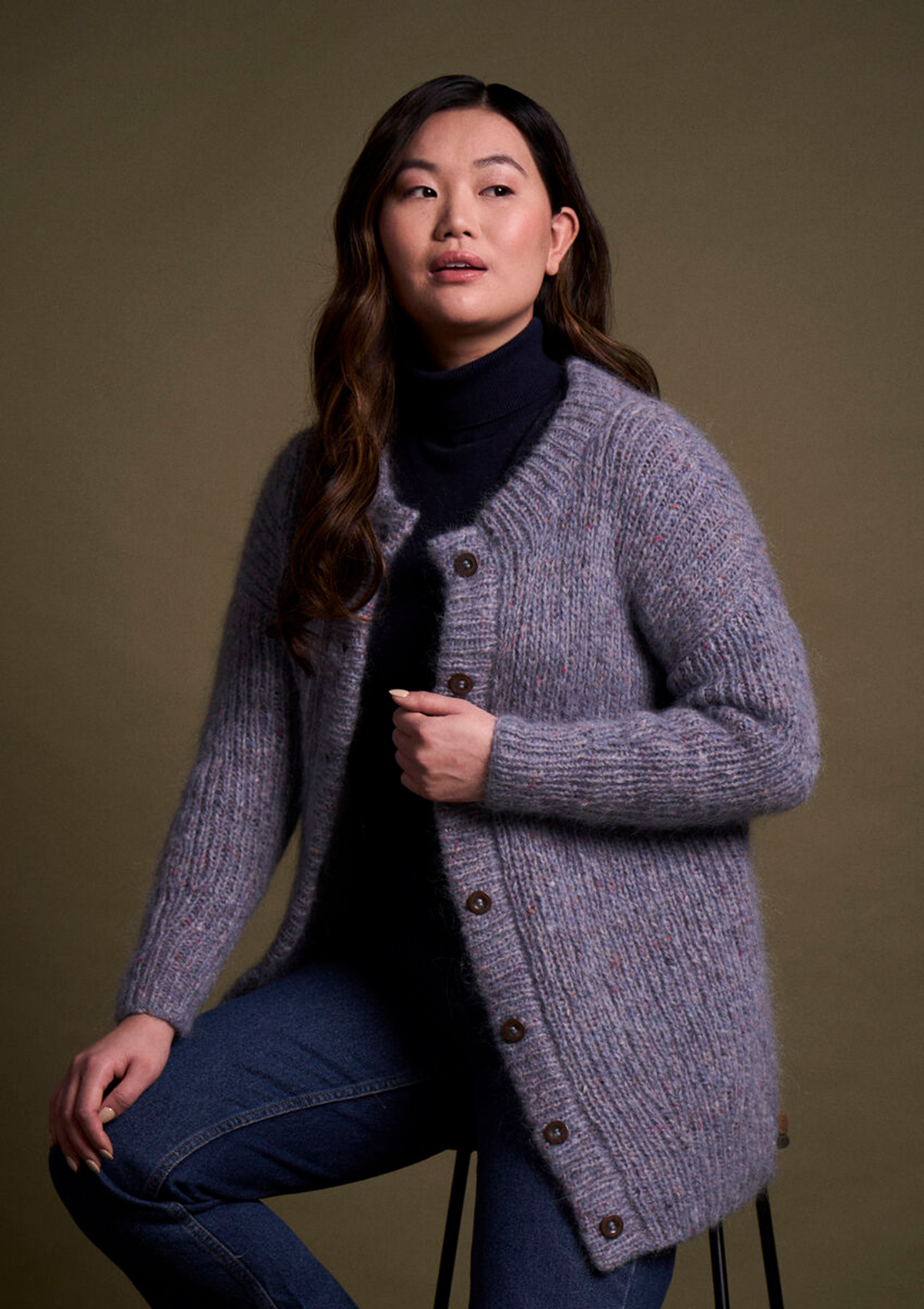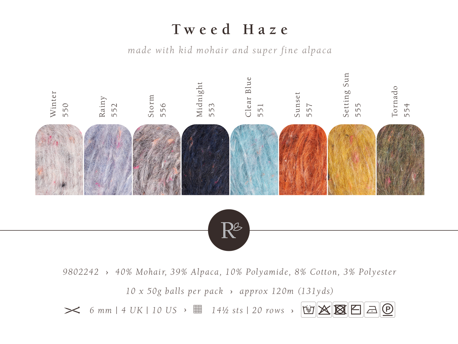 Rowan-британский премиальный бренд пряжи высокого качества с натуральными составами. Tweed Haze — это пряжа с уникальными волокнами. В её составе мягкий мохер из Южной Африки, тонкая альпака и хлопковые твидовые вкрапления, создающие особую структуру. Теперь твид доступен и в таком необычном варианте — в нежной дымке мохера. Эта пряжа обладает изысканным романтическим шармом и подчёркивается яркими акцентными цветами, придающими изделиям богатую и роскошную текстуру. Tweed Haze легко и быстро вяжется, невероятно мягкая и удивительно тёплая. Палитра включает нейтральные оттенки и трендовые яркие цвета. Чтобы вещи служили долго, стирайте их вручную при температуре до 30 градусов и сушите горизонтально. Перед началом проекта свяжите и постирайте образец. Для размера M понадобится 500–600 граммов пряжи. Рекомендуемые спицы — № 6.