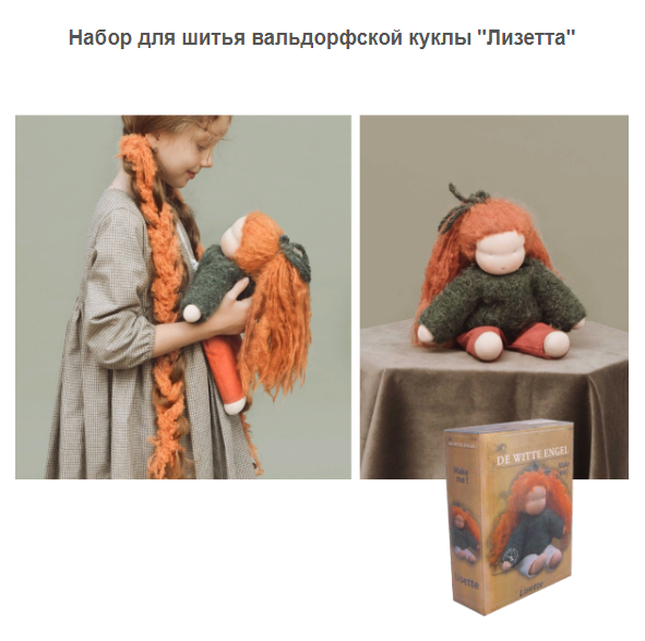 Голландская компания De Witte Engel широко известна наборами для создания вальдорфской куклы. При создании используются только натуральные и природные материалы (лён, хлопок и шерсть).