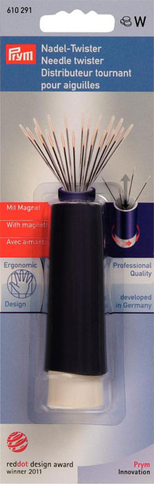 Все швейные и штопальные иглы можно теперь хранить безопасно. Эта сливово-синяя игольница-«твистер» из серии prym.ergonomics обеспечит надежное хранение и удобное извлечение швейных и штопальных игл. С помощью поворотного механизма в ножке вращающейся игольницы-«твистер» иглы появляются в форме веера. Иглы любых типов и размеров можно распознать с первого взгляда и извлечь необходимые. Находящийся внутри вращающейся игольницы-«твистер» магнит обеспечивает правильное расположение игл. Включая изящный колпачок с защелкой «Клик», который гарантирует нахождение игл в игольнице «твистер» Вращающаяся игольница-«твистер» представлена в различных привлекательных цветах и идеально подходит для сортировки игл различных типов и размеров длиной до 64 мм. Практичная и изящная вращающаяся игольница-«твистер» была в 2011 году отмечена премией Red Dot Design Award.