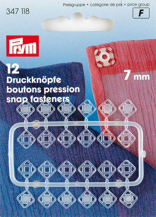 Кнопки пришивные, пластик, квадратные, 7мм, прозрачные, 12шт в блистере, Прим