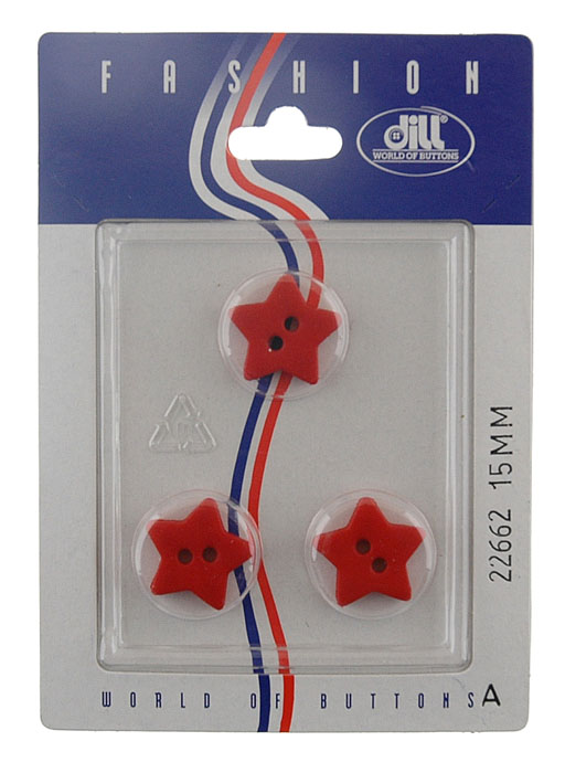 Пуговицы, размер 15мм, пластик, красный, 3шт в упаковке