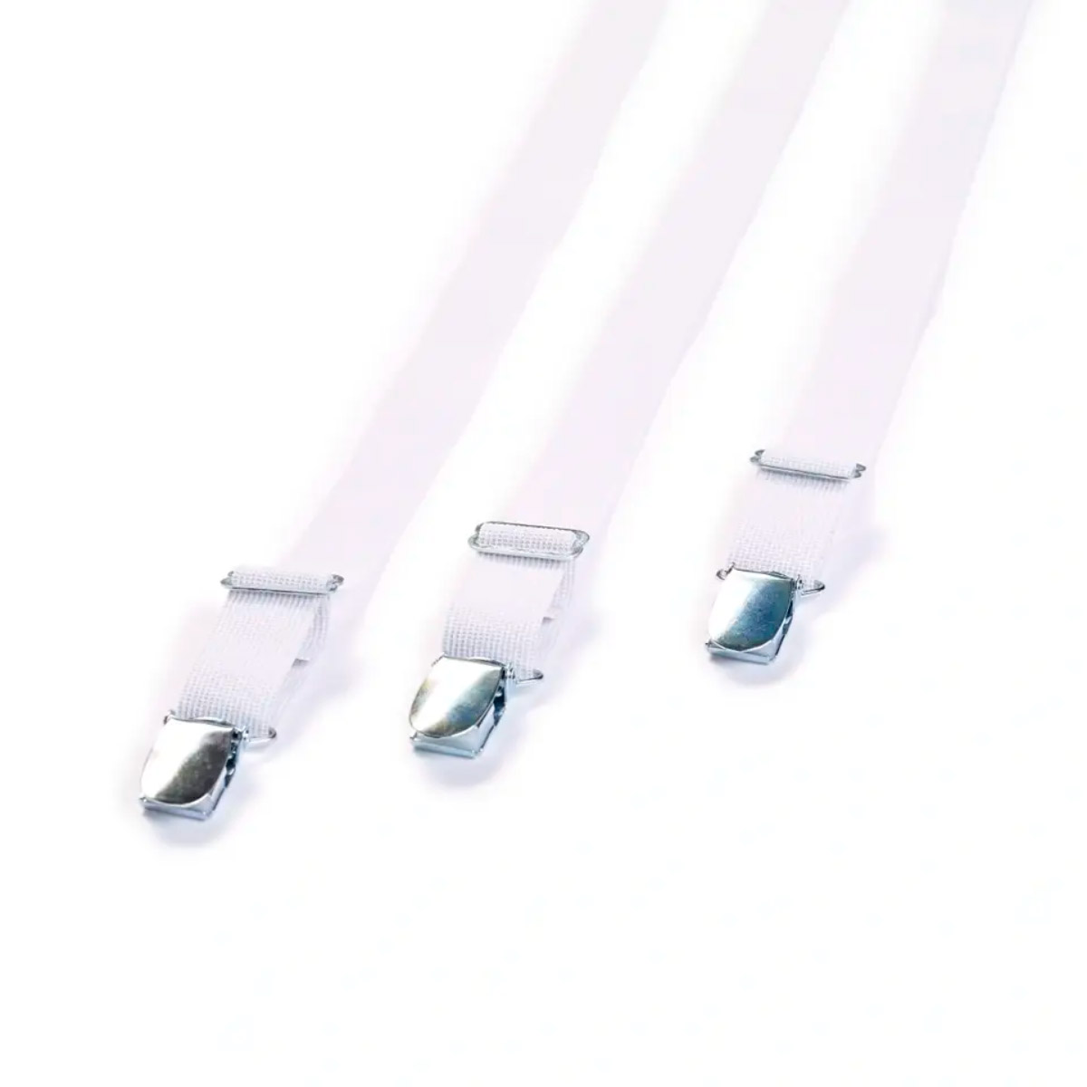 Держатели простыни (резинки с клипсами) (62% полиэстер, 38% эладостин), белый, 3шт в блистере, max размер резинки 1,4 м.