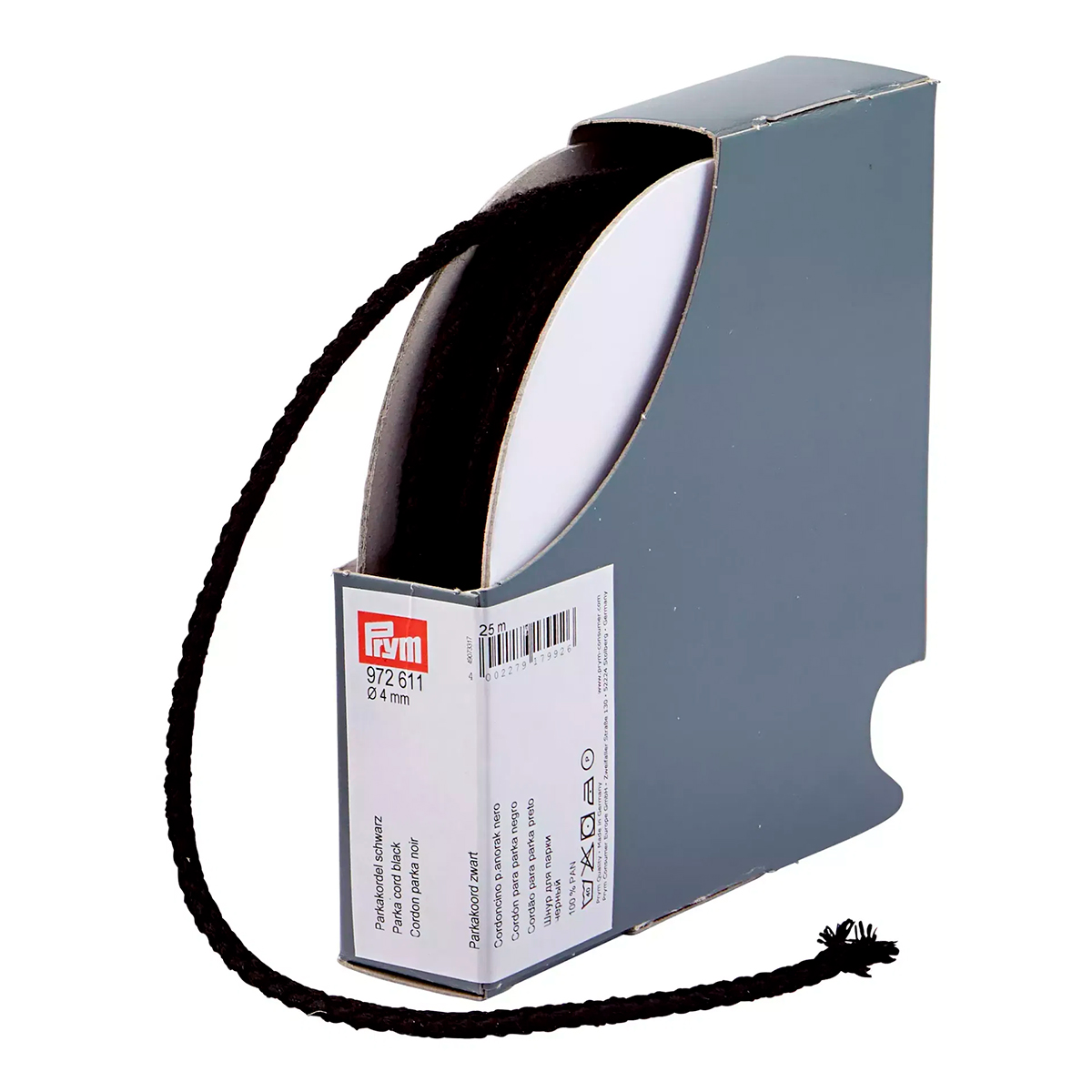 Шнур для парки, диаметр 4мм, 100% полиакрил, черный, Prym, 972611