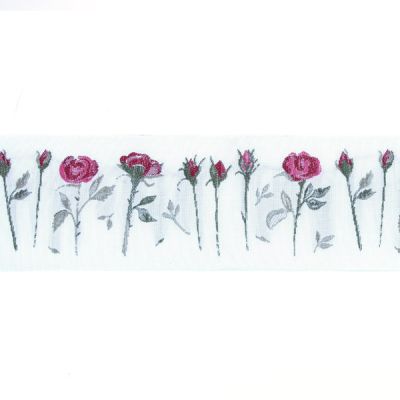 Тесьма декоративная "Розы", ширина 50мм (основа 100% полиэстер, рисунок 100% хлопок), белый/красный/розовый/серый