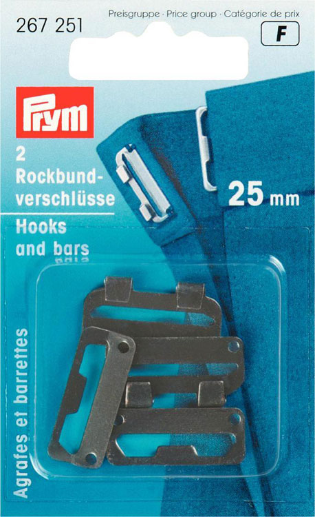 Застежки д/пояса юбки, сталь, с защитой от коррозии, пришивные, 25мм, черный, 2шт в блистере, Прим